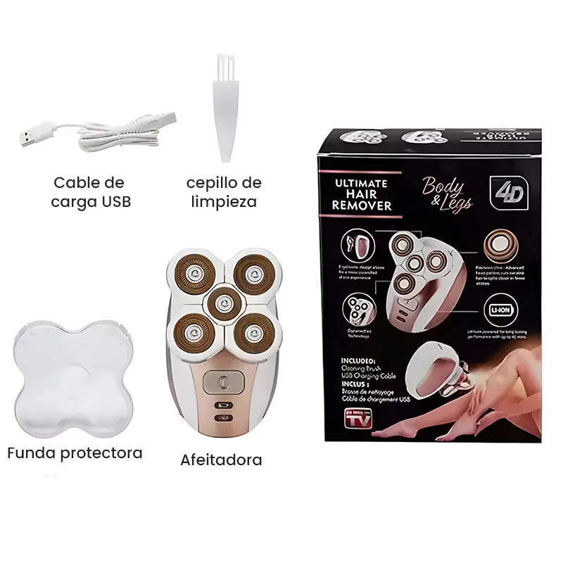 ⚡ Afeitado rápido y sin esfuerzo — cuchillas 4D que se adaptan a cada contorno.